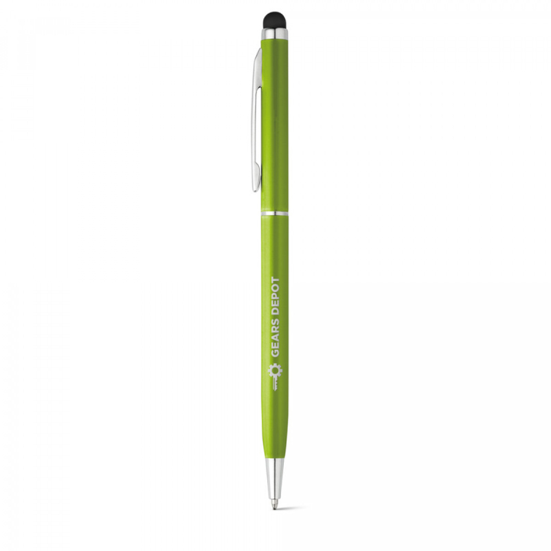 Hliníkové kuličkové pero s otočným mechanismem, klipem a dotykovým hrotem. ø8 x 135 mm